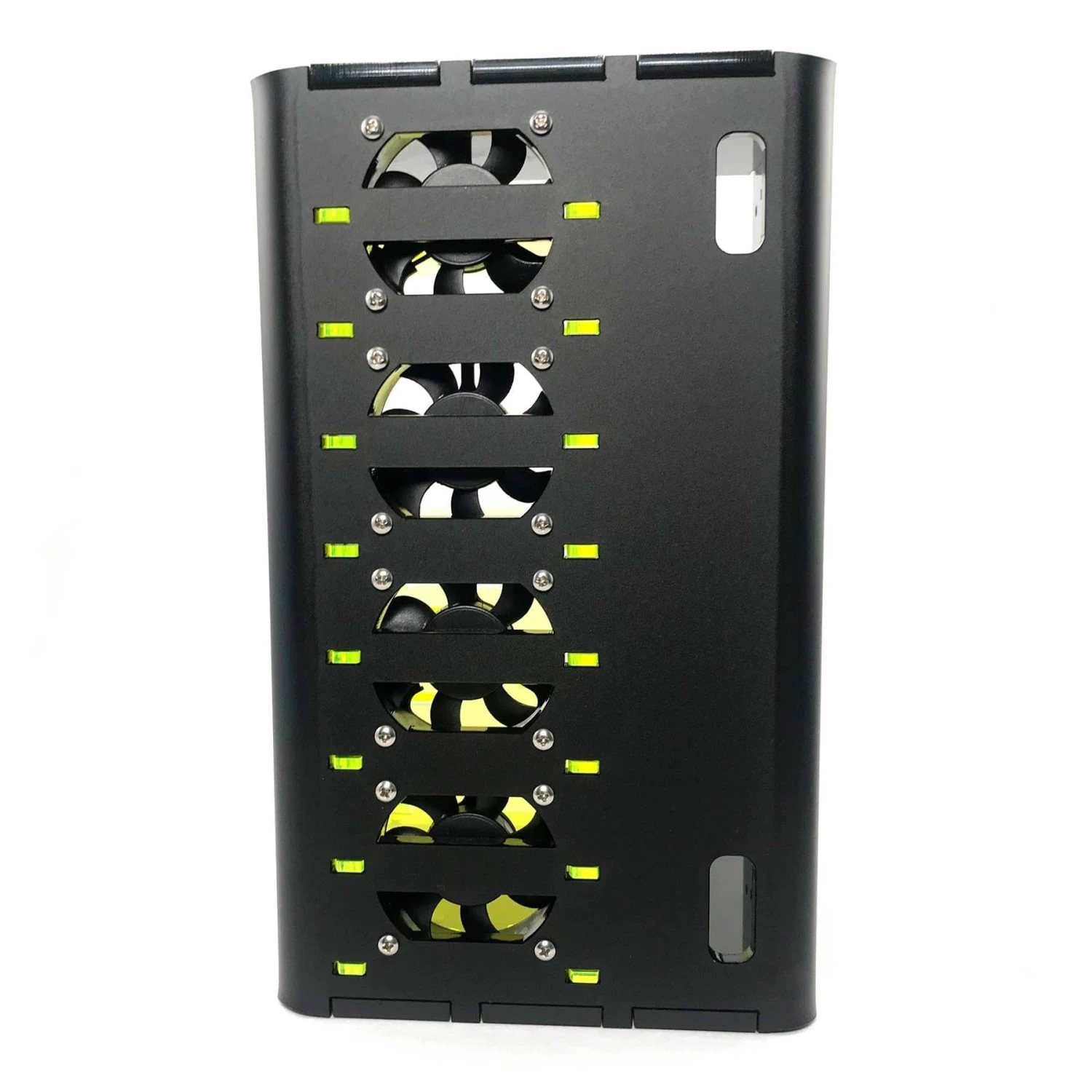 The case is made from thick and sturdy 1/4″ acrylic in the USA and is available in Black/Clear or Black/Lime. Our