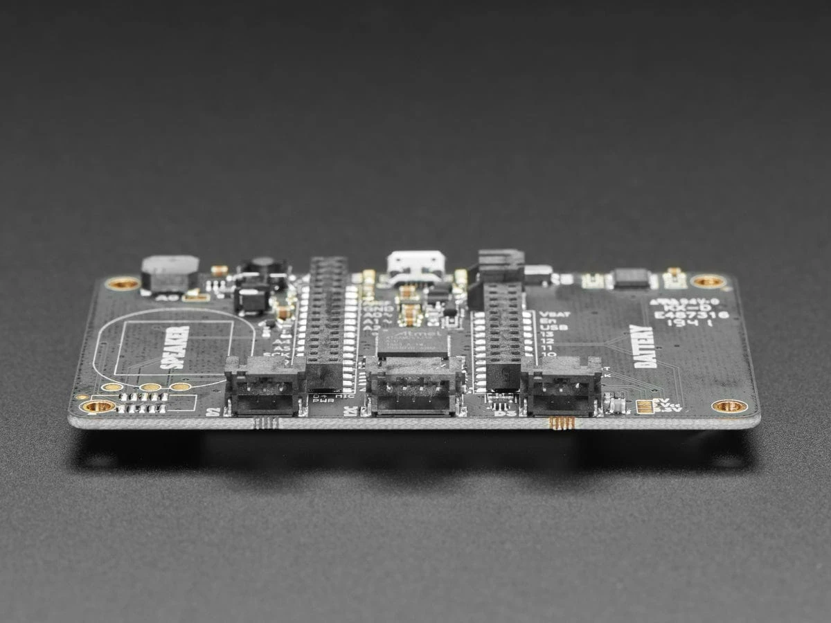 - Two female header strips with Feather-compatible pinout so you can plug any FeatherWings in