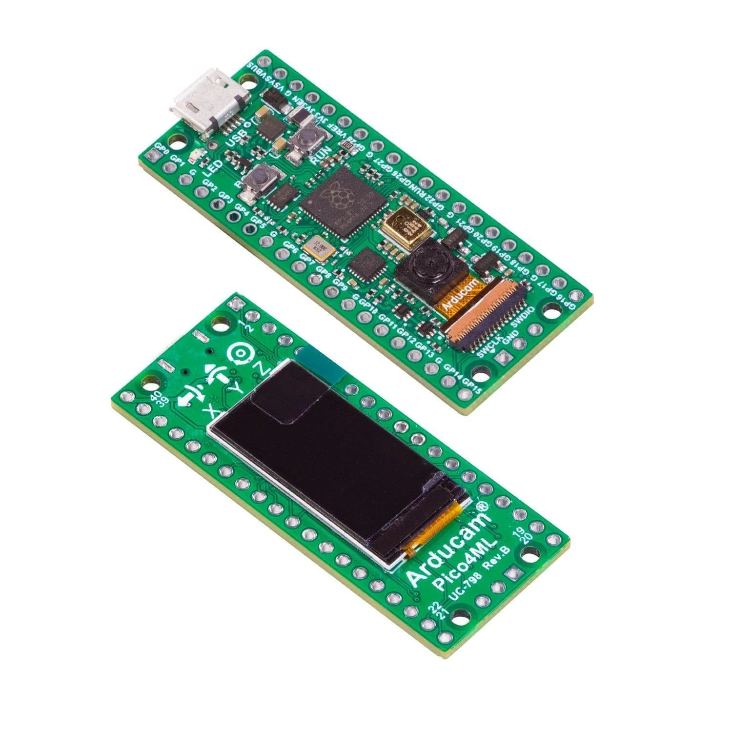 more robust for TensorFlow Lite Micro, the Arducam team took the Raspberry Silicon (also known as the RP2040 chip) and created the open-source Pico4ML, a microcontroller development board made exclusively for running and training machine learning examples!