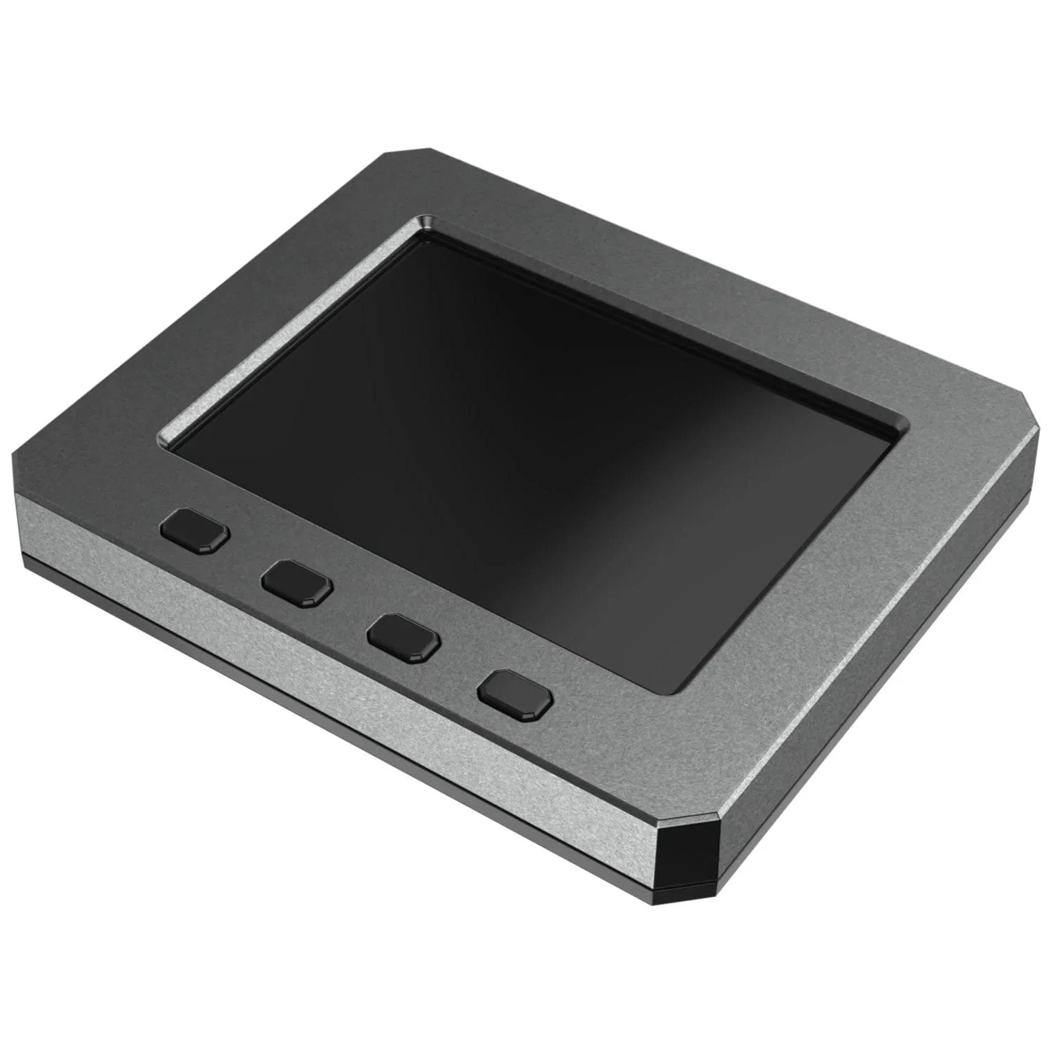 The POD 2.8″ Display module simply pushes onto your assembled Pod case (with USB HDMI module attached and soldered GPIO headers) to provide a compact display and four programmable buttons. An embedded IR receiver is also onboard for IR controls.