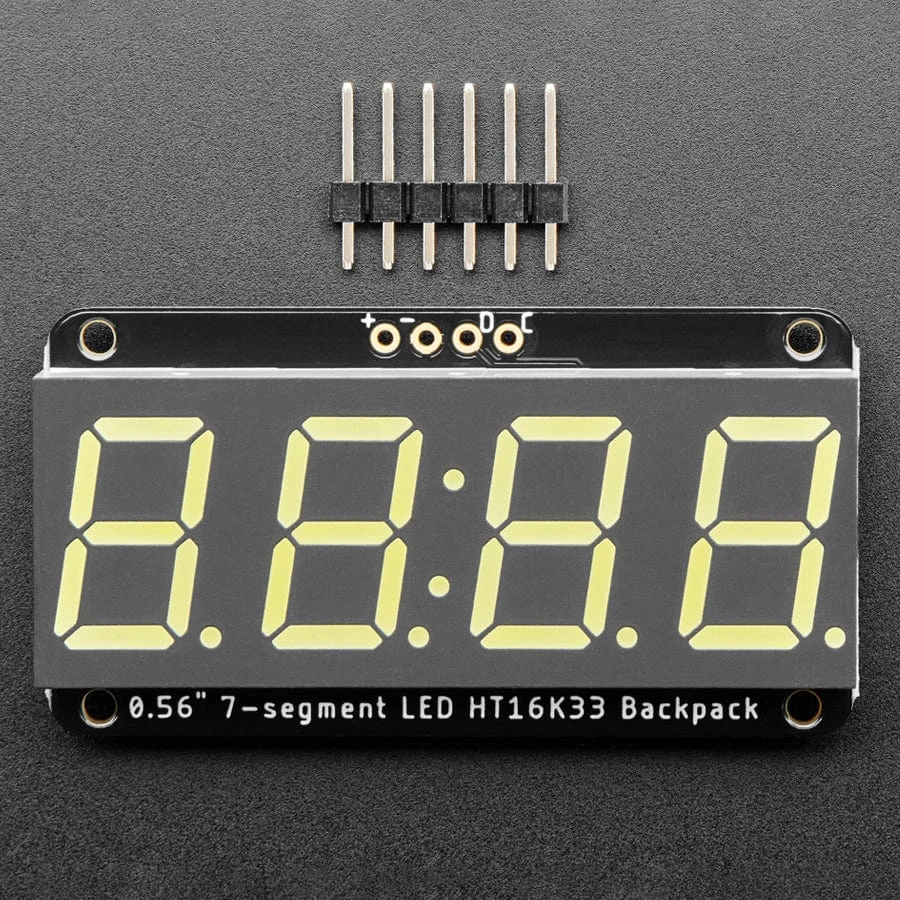 I2C connectors. This allows you to make solderless connections between your development board and the HT16K33 or to chain it with a wide range of other sensors and accessories using a