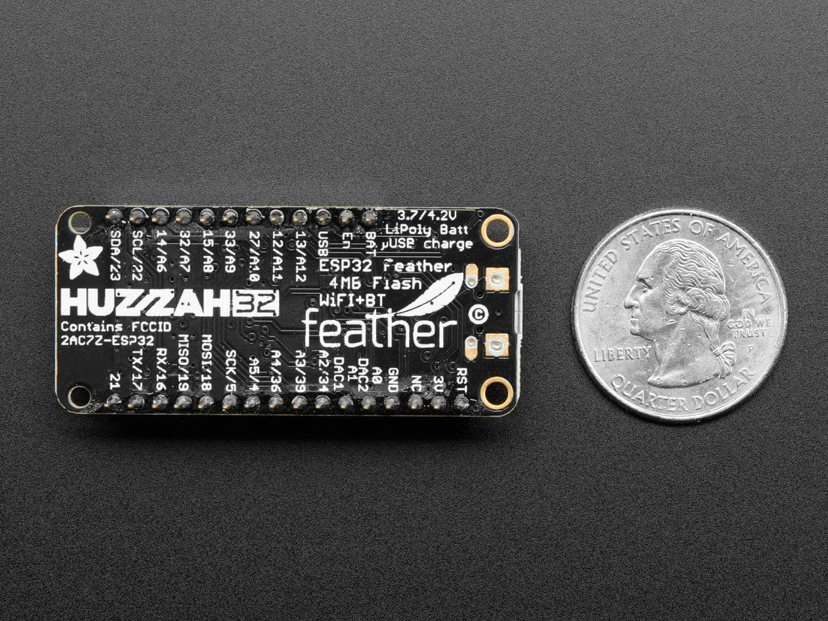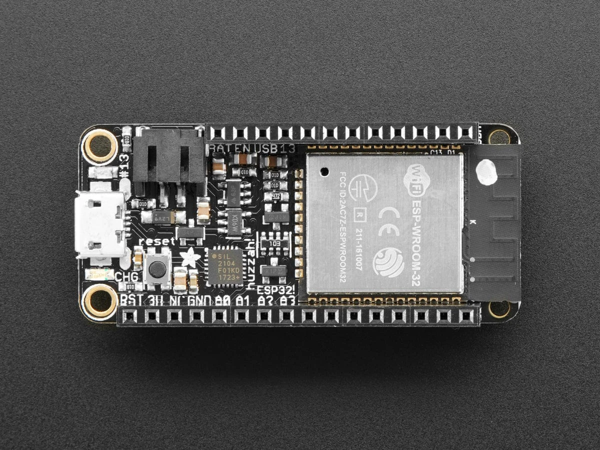 This version of the ESP32 Feather comes with stacking headers already soldered in so its ready for instant gratification and Feather fun!