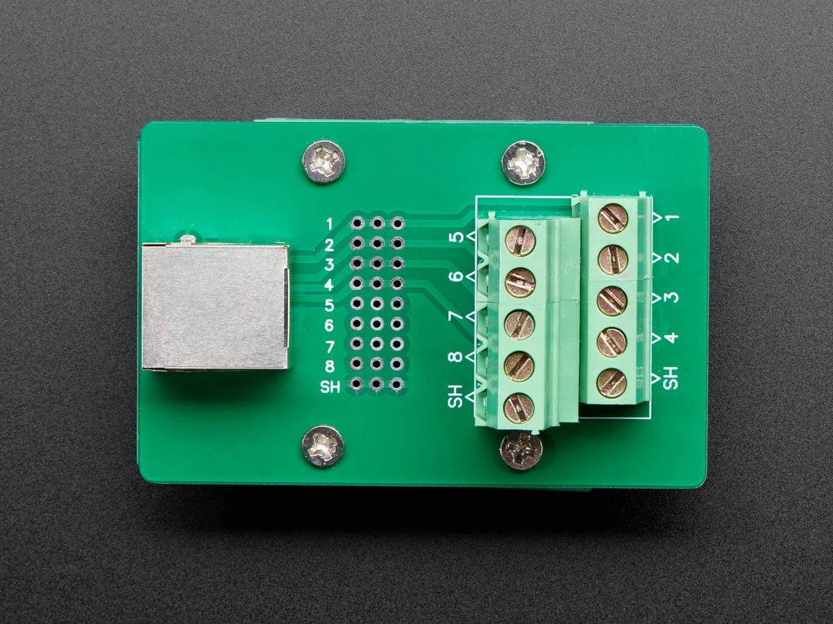 Note that these aren’t recommended for actual Ethernet traffic, especially long term…given that the twisted pairs are decidedly untwisted when they are on the PCB but for basic power/data distribution, RJ45’s are great!