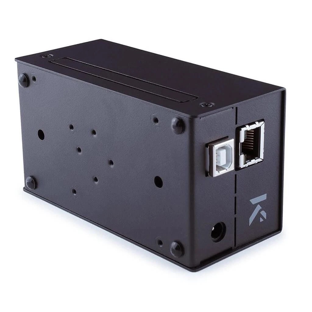 The case is precision laser cut from a combination of powder-coated steel and stainless steel. There is access for switches and connections for 9v battery access (for wireless projects). Air vents are included on the top of the case and there is a cut-out for cables along the side of the casing too. 4 rubber feet are included.
