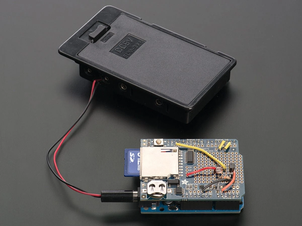 For more information, including libraries, schematics and examples see the data logger shield webpage