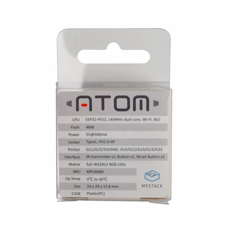 It’s programmable via Arduino IDE, but also by the graphical drag and drop programming interface UIFlow, ideal for folks new to ESP32 microcontrollers. If you don’t need the LEDs, we sell the basic ATOM