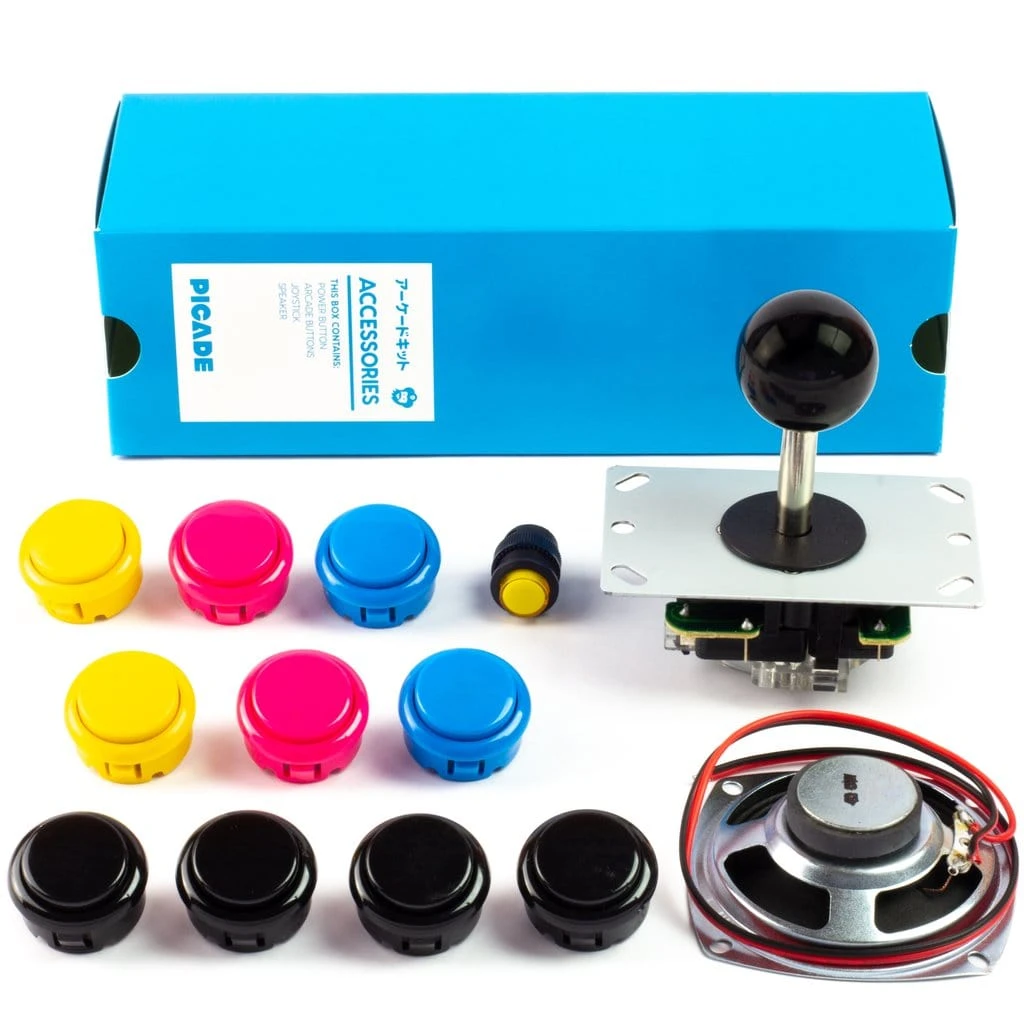 The all-new Picade has been completely redesigned, from the inside out! There’s new artwork, a new display and display driver board, dedicated power button, an all-new Picade X HAT, easier wiring, easier access to the interior of the cabinet, beautiful new packaging, a bunch of extra goodies (stickers and an enamel Picade pin), and a gorgeous Picade poster and assembly instructions.