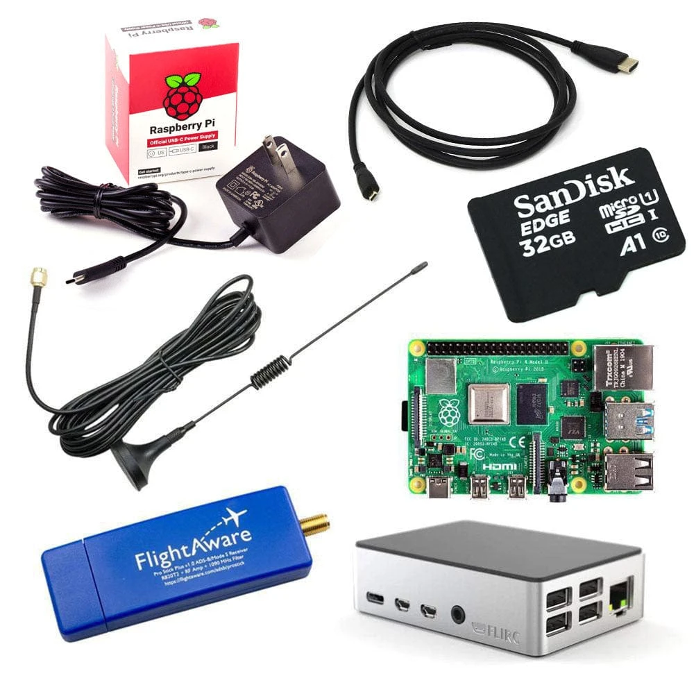 Our flight tracking starter kit includes everything you need to get started, including a Raspberry Pi 4 4GB board. Just plug in your existing
