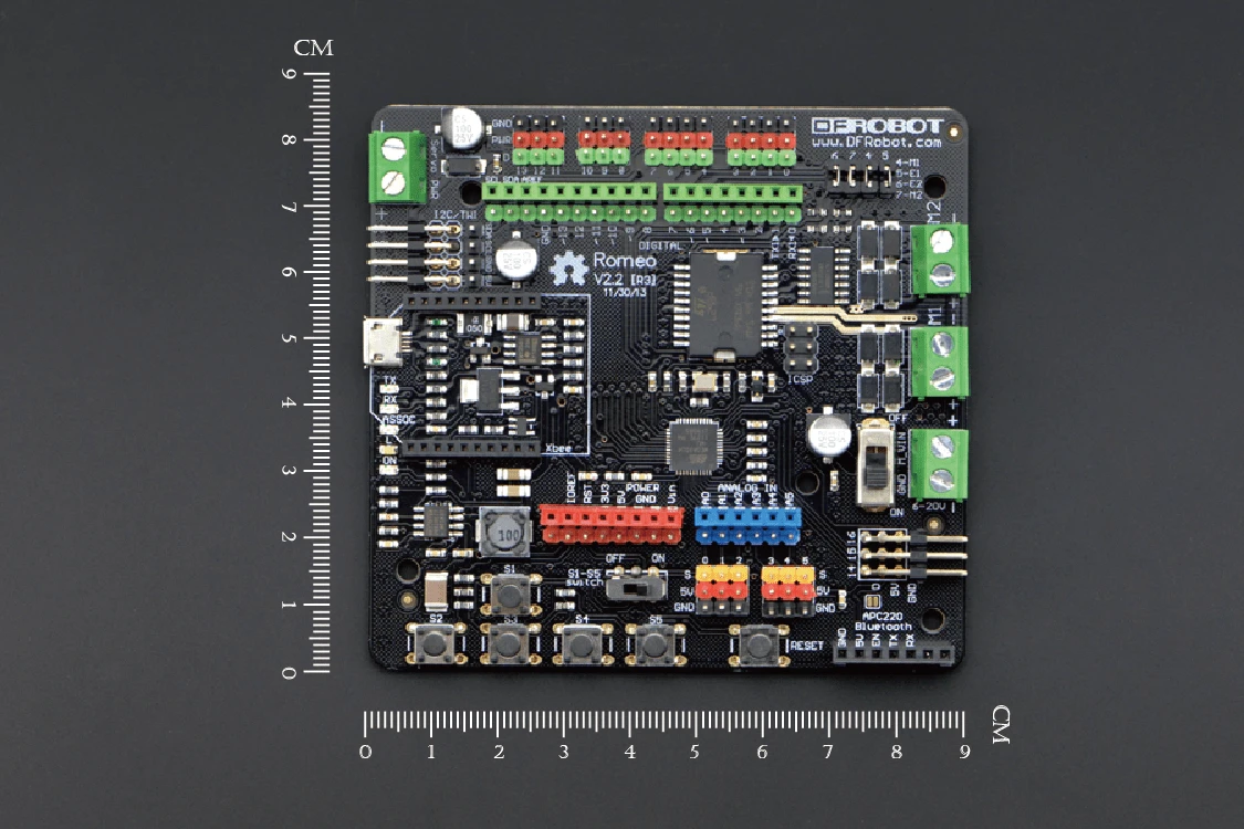 - Integrated sockets for APC220 RF Module and DF-Bluetooth Module