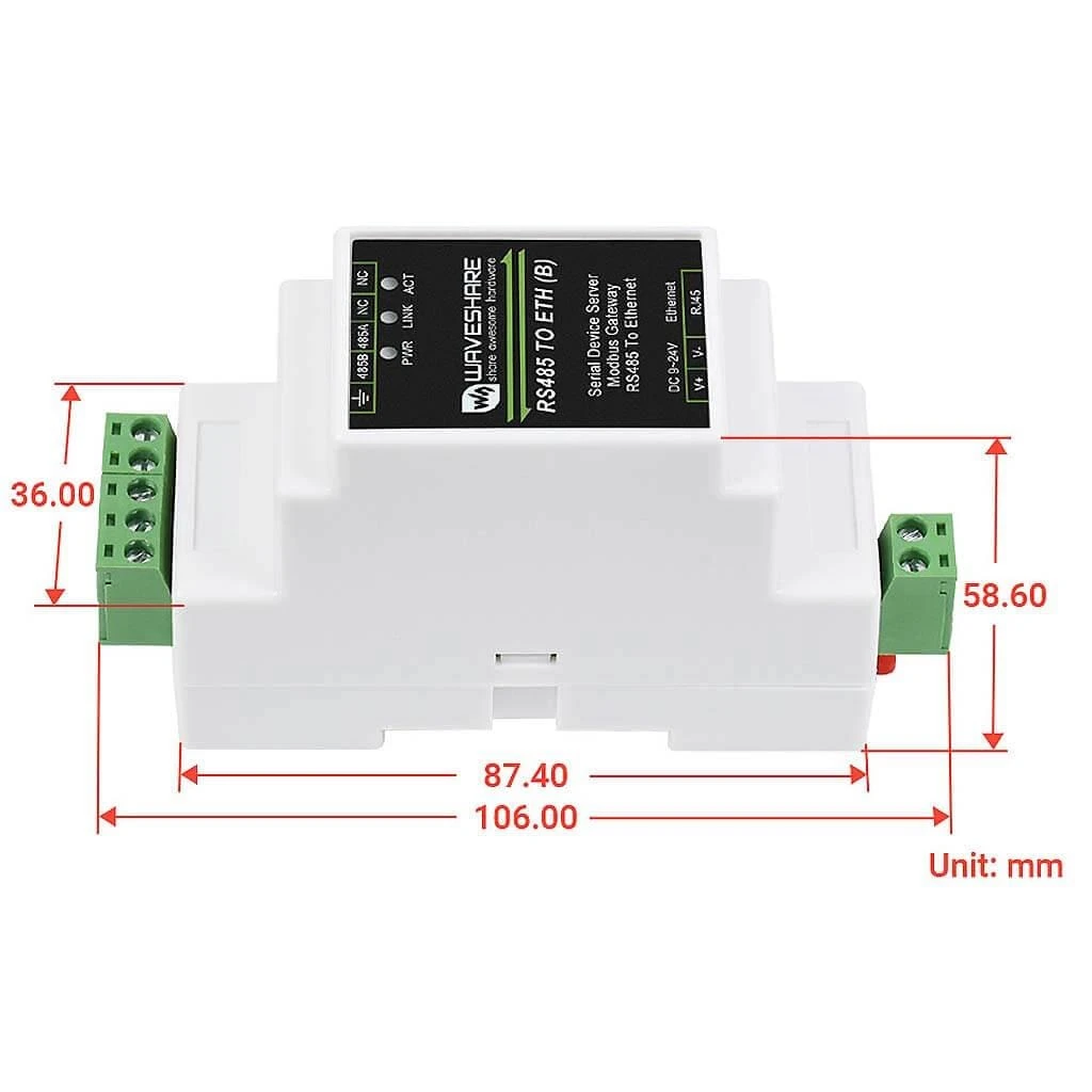 This is an RS485 device data acquisitor / IoT gateway designed for the industrial environment. It combines multiple functions in one, including serial server, Modbus gateway, MQTT gateway, RS485 to JSON and more.