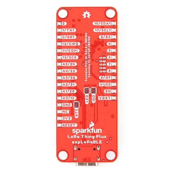 development board with the NM180100 system in package (SiP), from Northern Mechatronics. Thanks to the NM180100, as well as the Ambiq Apollo3 microcontroller and the Semtech SX1262 LoRa transceiver, this Thing Plus is a highly integrated LoRa® module supporting both 868MHz and 915MHz bands and Bluetooth® Low Energy. On top of all else, the expLoRaBLE Thing Plus utilizes our handy Qwiic Connect System which means no soldering or shields are required to connect it to the rest of your system!