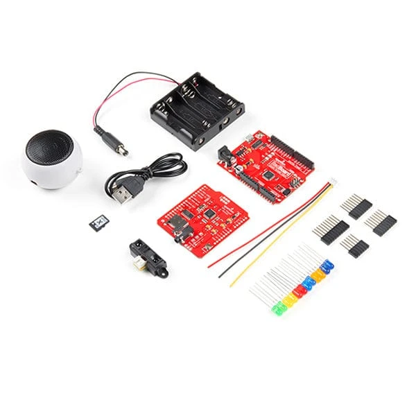 Start a proximity sensing project today with the SparkFun Proximity Sensing Kit. Using an infrared proximity sensor, a RedBoard Qwiic, and the included hookup wire, you can easily get up and running on a multitude of projects. Do you want an indication light when something is within proximity? Well we have you covered by including a package of assorted 5mm LED’s. How about adding sound to your project? We have also added an MP3 shield and a speaker. From social distancing, automatic doors, robotics, Halloween projects, and whatever your imagination brings you, this kit gives you enough to work with for countless possibilities.