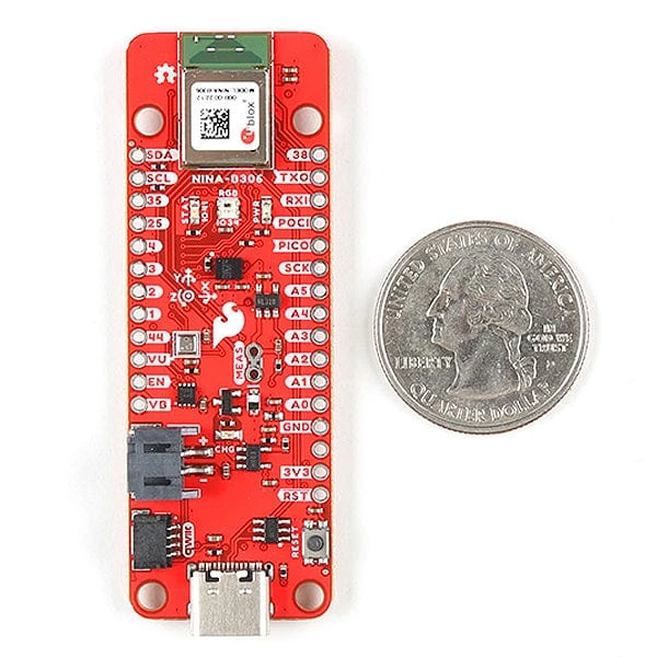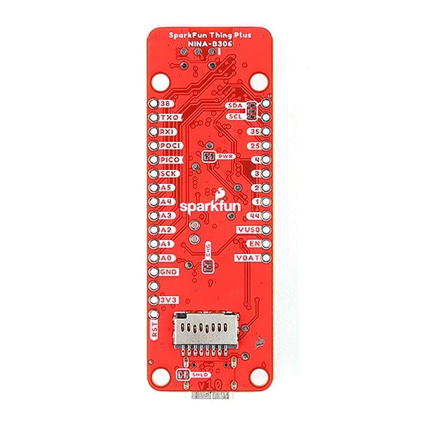 The SparkFun NINA-B306 Thing Plus offers a unique combination development platform in the Thing Plus form factor featuring the NINA-B306 from u-blox™, the ISM330DHCX 6DoF IMU from STMicroelectronics™ and the BME280 atmospheric sensor from Bosch Sensortec™.