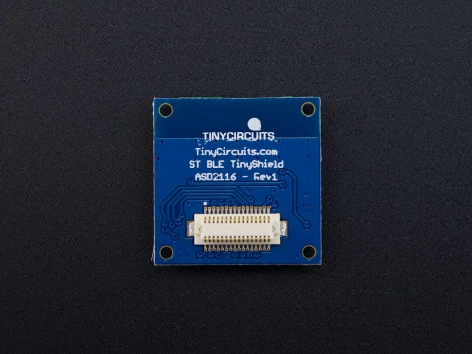 This TinyShield is based around the BlueNRG-MS chipset by STMicroelectronics, which comes in the SPBTLE-RF module. The TinyShield also includes power supply and level shifters on the board, so you can run your TinyDuino from 3.0V – 5V.