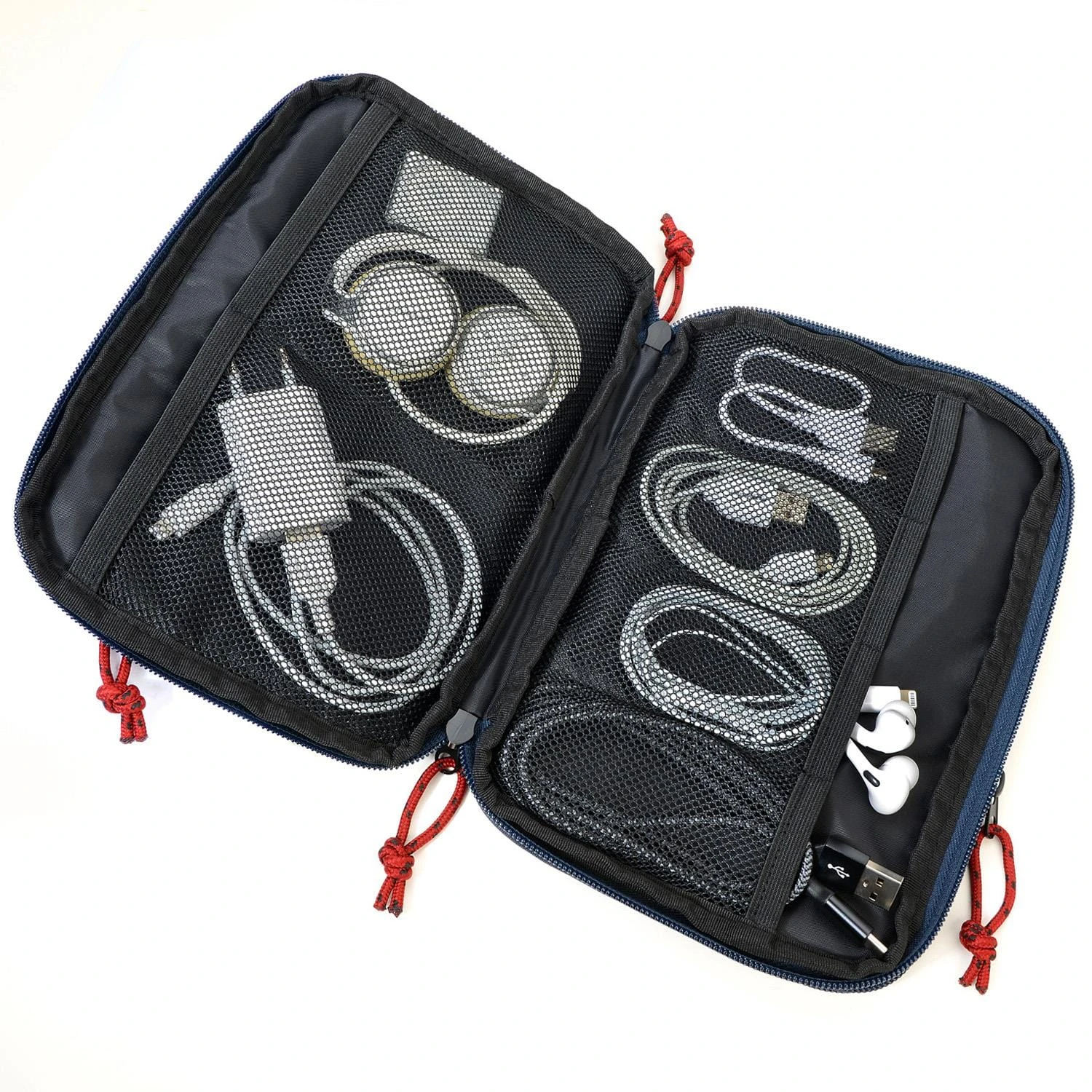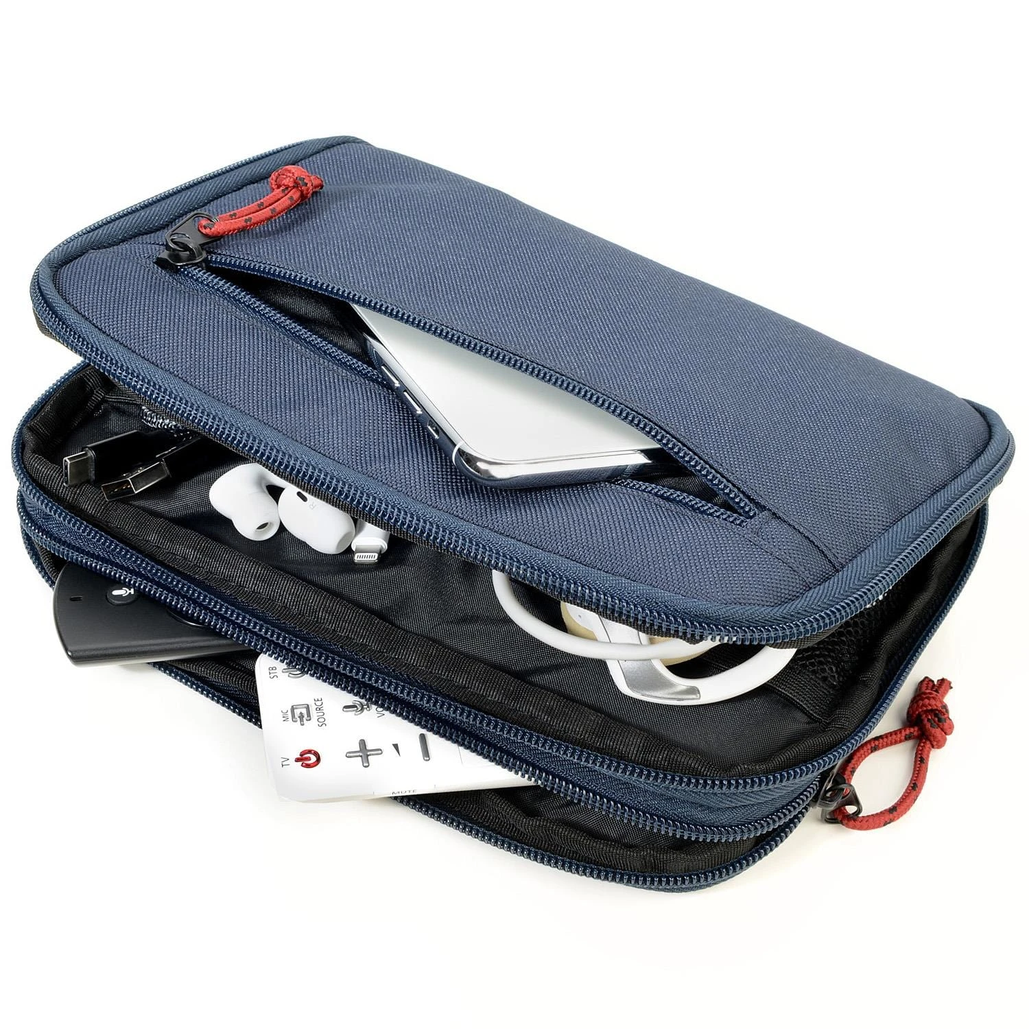 The pouch has sufficient compartments to ensure clear storage space for your gadgets. Headphones, adapters, power supplies, power banks, charging cables, wireless headphones? It doesn’t matter, this bag packs everything neatly and in a compact package.